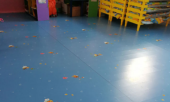 1.幼儿园室内专用PVC地板由TPU处理的表层、PVC耐磨层、1000D的玻璃纤维补强网和特殊网格布纤维交叉编制的加强层和PVC发泡缓冲层组成。2.幼儿园室内专用PVC地板100%纯PVC耐磨层,厚度达1.5mm,并经防老化和紧固技术处理,耐磨耐压,使用寿命可达5—10年。3.幼儿园室内专用PVC地板的玻璃纤维补强网和特殊网格布